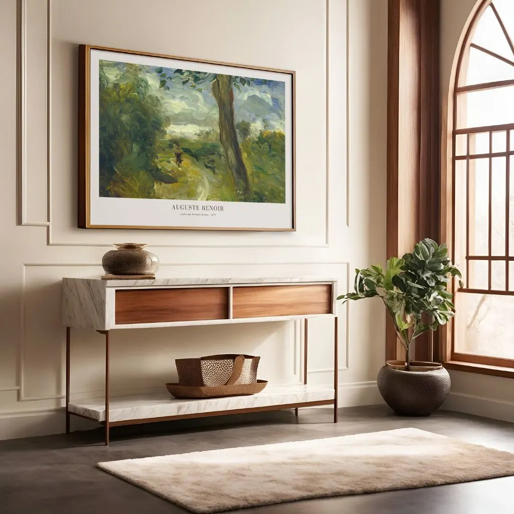 Renoir blends greens, blues, and golden tones into a natural harmony that feels soothing yet emotionally rich. The wide composition works beautifully in classic, scandi, or rustic interiors, making it ideal above a sofa, bed, or desk. Choose a framed poster for a polished, gallery-ready finish, or an unframed print for a clean, contemporary look that keeps the landscape open and serene.