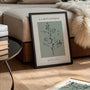This elegant botanical wall art features a delicate line-drawn flower set against a muted sage-grey background. Minimalist styling gives the piece a clean modern presence, while fine botanical details bring harmony and a naturally calming mood.
