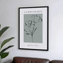 Fleurs Contours is a refined botanical wall art print created in delicate line art on a muted sage-green background. The minimalist composition blends clean modernist geometry with a soft organic motif, creating a balanced look that feels calm, airy, and quietly sophisticated.