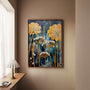 The floating frame adds depth and a refined, luxurious feel, while rich colours and precise craftsmanship make each piece impossible to overlook.