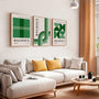 Shades of green, from light olive to deep forest, bring balance and calm to the room while keeping the look modern and refined. Display the trio as a cohesive framed poster set for a clean gallery statement, or choose each piece as an elegant unframed print for a lighter, minimalist finish. Ideal for living rooms, bedrooms, offices, and interiors inspired by nature, Scandinavian simplicity, and modernist design.