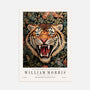 This striking wall art pairs the raw energy of a tiger with an intricate floral backdrop inspired by the decorative language of William Morris. The expressive animal form stands out against richly detailed botanical ornamentation, creating a dynamic contrast between wild nature and refined pattern design rooted in the Arts & Crafts tradition.