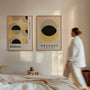 This Bauhaus wall art set includes two coordinated posters designed around iconic geometry and clean minimalism. Circles and semi-circles build a balanced composition in a refined palette of yellow, beige, and deep black—bringing light, structure, and a confident modernist feel to your wall.