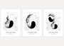 The Atelier Noir set features three contemporary abstract art prints created in a refined palette of deep black and soft light gray tones. Each composition is built around expressive circular brushstrokes, organic movement, and subtle texture, resulting in a calm yet visually powerful minimalist aesthetic.