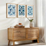 Designed as a coordinated set of three, these botanical watercolor prints bring freshness and elegance to the interior. The cool blue palette creates a calm yet decorative accent, making the artwork suitable for both modern and timeless spaces.