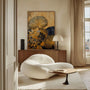 The floating frame adds depth and a refined, luxurious feel, while rich colours and precise craftsmanship make each piece impossible to overlook.