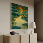 The floating frame adds depth and a refined, luxurious feel, while rich colours and precise craftsmanship make each piece impossible to overlook.