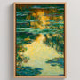 Part of Monet’s legendary Water Lilies works, this framed canvas print celebrates his lifelong fascination with nature and the fleeting beauty of a single moment. The composition feels airy and immersive—ideal for creating a calm atmosphere in a living room, bedroom, or workspace.