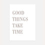 Good Things Take Time Poster is minimalist typographic wall art featuring the quote in a soft beige tone. Clean composition and elegant lettering bring a quiet, balanced feel to your space, while the message offers a subtle reminder of patience and mindfulness. The neutral palette pairs effortlessly with bright rooms, natural materials, and warm minimal styling.