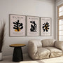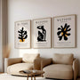 This set of three wall art posters is inspired by Henri Matisse’s papiers découpés and his unmistakable language of organic form. Soft, flowing shapes move between abstraction and subtle suggestions of nature and the human figure, creating a clean, modern rhythm that feels curated and gallery-ready.