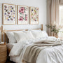 Le Pouvoir des Fleurs is a set of three vintage-style floral prints inspired by French atelier posters. Soft cream backgrounds highlight delicate blooms in dusty pink, mauve, lavender and deep plum, with olive and muted golden stems for a calm, elegant look.