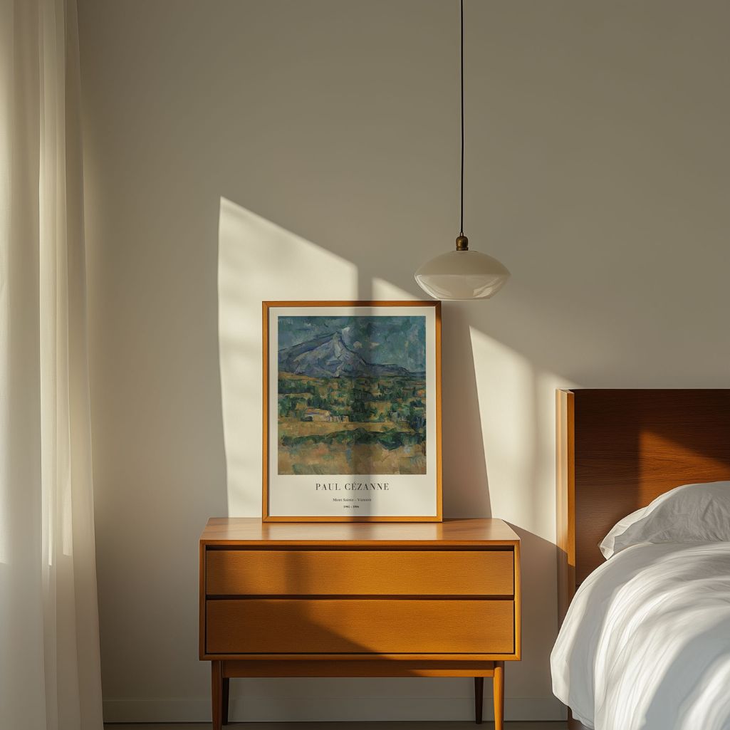 Paul Cézanne’s Mont Sainte-Victoire is a landmark of modern landscape painting—an image built from confident planes of color and a strong sense of underlying form. The famous Provençal mountain becomes both serene and monumental, shaped by light, rhythm, and geometric balance that feels surprisingly contemporary. This wall art is ideal for modern, minimalist, and creative interiors, adding a refined French atmosphere without overpowering the room. Available as a framed poster or an unframed print, it’s a timeless choice for a living room, office, or studio-inspired space.
