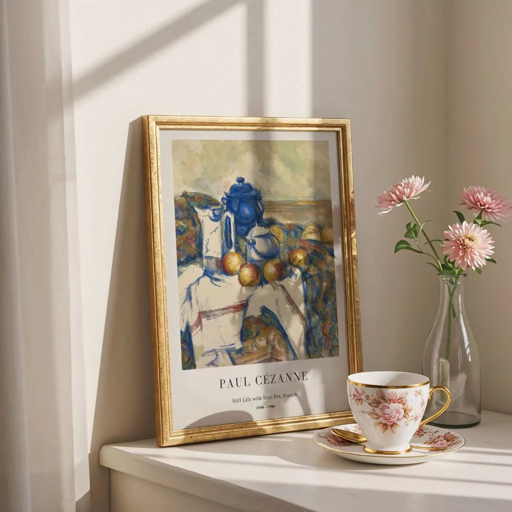 Paul Cézanne’s Still Life with Blue Pot shows his signature ability to turn everyday objects into a structured, modern composition. The blue pot and arranged fruit become a study of form and balance, built from confident brushwork and carefully placed color planes. Saturated blues, sunny yellows, and fresh greens create a lively dialogue of tones, while the overall mood stays calm and refined. This wall art suits both contemporary and classic interiors, making an elegant statement in a living room, dining area, home gallery, or office. Choose it as a framed poster or an unframed print for a timeless touch of French post-impressionism.