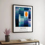 This elegant wall art features Paul Klee’s subtle balance of geometric order and poetic symbolism. A warm orange tree motif set against cool blues and purples evokes the shift between seasons and the quiet beauty of nature. Clean shapes, lines, and gentle tonal changes create a calm visual rhythm that feels both modern and timeless.