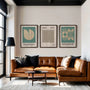 A restrained palette of sage green and beige adds an architectural calm that works beautifully in minimalist, japandi, and modern interiors. Display the trio as a cohesive framed poster set for a refined gallery statement, or choose each piece as an elegant unframed print for a lighter, graphic finish. Ideal for living rooms, offices, and studies—made for those who appreciate geometry, disciplined design, and timeless Bauhaus aesthetics.