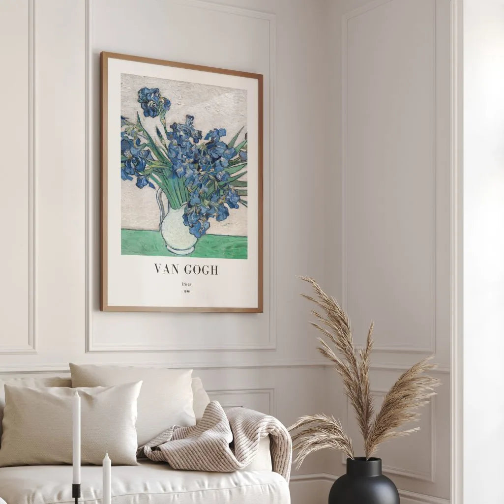 Painted in the final months of Van Gogh’s life, this floral still life feels contemplative and fresh—perfect for interiors that value simplicity and balance. It pairs beautifully with scandi, japandi, modern, or classic decor and works well in a bedroom, living room, or office. Choose a framed poster for a polished, gallery-ready finish, or an unframed print for a clean, contemporary look that keeps the palette airy and bright.
