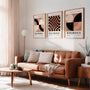 Warm caramel and cream tones contrasted with deep black add depth and character while staying true to modernist clarity. Hang the trio as a cohesive framed poster set for a strong gallery statement, or choose each piece as an elegant unframed print for a lighter, minimalist finish. Ideal as a bold accent in modern interiors, loft spaces, creative studios, and rooms inspired by mid-century design and modernism.