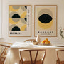 This Bauhaus wall art set includes two coordinated posters designed around iconic geometry and clean minimalism. Circles and semi-circles build a balanced composition in a refined palette of yellow, beige, and deep black—bringing light, structure, and a confident modernist feel to your wall.